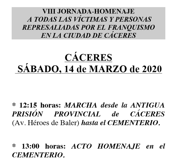 ACTO PÚBLICO DE HOMENAJE DE AMECECA EN EL CEMENTERIO DE CÁCERES EL 14 DE MARZO DE 2020