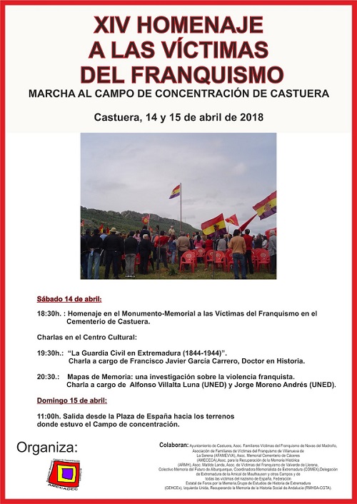 XIV HOMENAJE A LAS VÍCTIMAS DEL FRANQUISMO. MARCHA AL CAMPO DE CONCENTRACIÓN DE CASTUERA (14-15 DE ABRIL 2018)