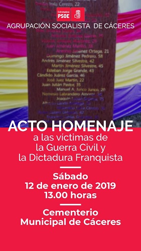 Acto de homenaje del PSOE a las víctimas del franquismo en Cáceres (12 enero 2019)